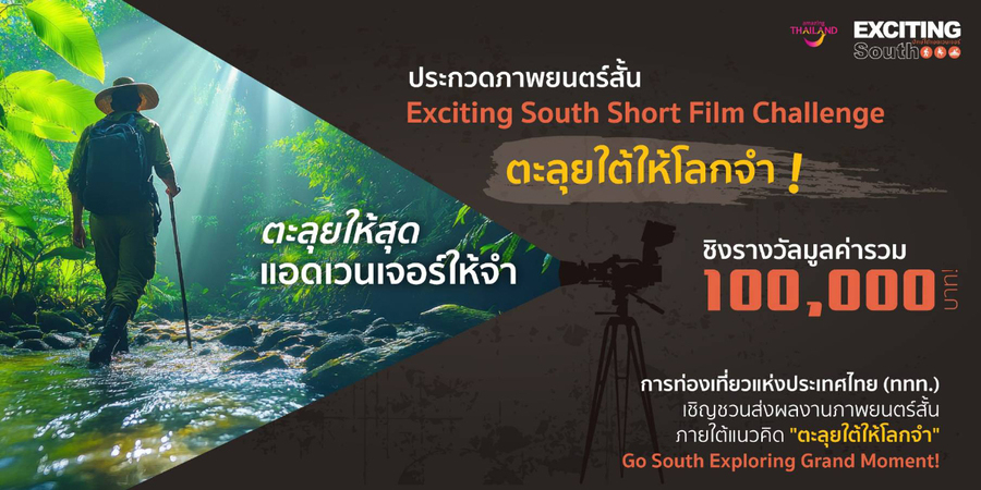 ททท. ชวนสายลุยเปิดประสบการณ์ใหม่! “Exciting South : ปักษ์ใต้ แอดเวนเจอร์” ท้าทายทุกขีดจำกัด กระตุ้นเศรษฐกิจภาคใต้ พร้อมประกวดหนังสั้น ชิงรางวัลรวมกว่า 100,000 บาท